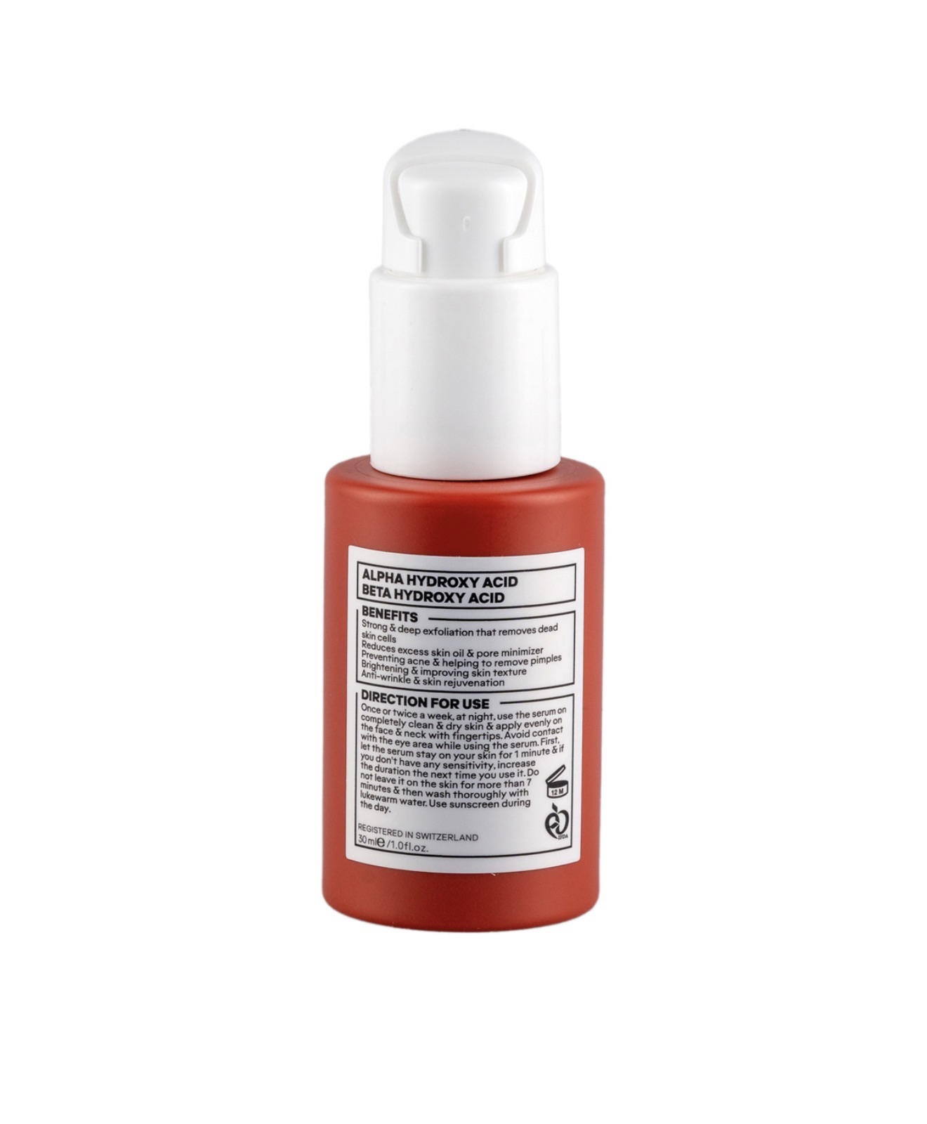 ترکیبات موثر: آلفا هیدروکسی اسید30%، بتاهیدروکسی اسید 2%